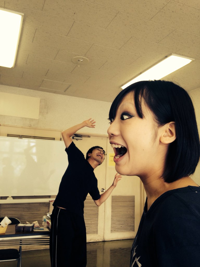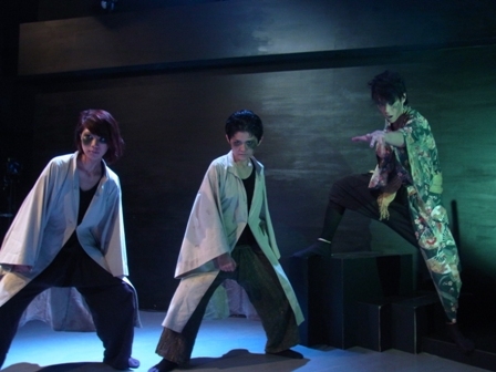 ヴェニスの商人本番直前短期集中連載◆出演俳優インタビューその4:凛子 次回公演 2014年10月22日 0 「最近カレーも好きです」 立夏です。 「ヴェニスの商人出演俳優インタビュー」第四弾は 凛子。 第六回公演「オセロ」[Othello the Shakespeare]からの登板となる凛子ですが、今どんな気持ちで芝居と向き合っているのでしょうか? …っと思ったら... どんどん話は凛子のペースに。なんでしょう、なんというか、私は凛子にはいつも敵いませんね。 彼女をきちんとご紹介するのははじめてかも知れません。獣の仕業最強、凛子。うちの珍獣です。どうぞ。# 芝居の話をしているバックナンバーはこちら。併せてご覧下さい。・第一弾:小林龍二・第二弾:きえる・第三弾:藤長由佳◆ 役作りは「相手との関係性」インタビュアー立夏(以下省略):(凛子の前に座ってレコーダのスイッチを押す)凛子 え? これもう始まってんの?─ ううん。凛子 はい、お願いします。─ じゃあ、よろしくお願いします。ええと、前回「オセロ」以来の出演ですけれど、オセロの時と今回の時で芝居への取り組み的に違っているところとか、反対にここは一緒だなと思うことがあれば教えて下さい。凛子 前回は男役…、で、今回は女役というか、「乙女」役だから。─ なるほど。凛子 (乙女役は)初めての役ですね。恋に恋する少女役。しかも彼女は初恋らしいので…「○○」の役がね…ふふふ。※ ○○は役名なので今回の記事では伏せ字にします。配役発表は後日こちらのブログで致します。お楽しみに!!─ 前回出演の「オセロ」の映像を自分で見たりしたんだけど、それを見ると凛子が今の稽古でやってる芝居とは随分演じ方がやっぱり違うなあということをこの間改めて思ったんですけれど、 第六回公演「オセロ」[Othello the Shakespeare] で夜光(IAGO)役を演じる凛子(写真左端)凛子 そうですかねえ。─ あれ、意識してない? うん、見てるとね、すごく違いがあるんだけどね。凛子の中で役作りに対するコダワリとかってあるのかしら??凛子 えー! ええっと、役作りはねえ… 相手役との関係性を深く考えていて、それから相手の思っていることとか、うーん、やっぱりバックグラウンド考えたりとか。その役の所属しているところの関係性かな、考えたりとか、うん。あとは17歳の○○(役名)がこの言葉をどんな気持ちで言ったんだろう? って、考えたりとか、ですかね!◆ 最近、カレーも大好きです。─ じゃあ好きな食べ物は!?凛子 えっ、ええええ! いっぱいあるけどもー、…ハンバーグです。─ OK、OK。ありがとうございます。凛子 あっ、最近カレーも大好きです。─ カレーって言っても色々あるけども? どんなカレーが好きですか。凛子 えっとー、カレーは元々好きだったんですけど、あの、お茶の水にある「エチオピア」ってカレー屋さんのカレーが凄く美味しくて、それからカレーが大好きになりました!─ なるほどー! ありがとうございます!そっか…。 稽古場では大体このお茶を飲んでいます。凛子 すっごくおいしいんだよ!!─ いっぱい食べちゃう?凛子 いっぱい食べちゃうー! 具沢山だし…─ 稽古場でもたくさんモノを食べている様子が目撃されている凛子さんだけれども、ははは…、ご飯が…ね、ホント大好きで…凛子 ご飯大好きなんです~(うっとり)─ ははは…。はあ…、ちょっとこれ食いしん坊キャラになっちゃうよこのインタビュー。凛子 だめだよ!! 自重してるんだから、今回も恋する乙女だから頑張って可憐さを出そうとしてるんだから、それで痩せようとしたんだけど…。努力は報われず、増えました!─ 本番までに(体重の)目標は… 凛子 言わないけど、体重は!─ (笑)凛子 でも本番までに5kgくらいは痩せたかったなあ。─ えー、5kgも痩せたら体力なくなっちゃうじゃん。凛子 だから肉を食いつつ。─ なるほど。凛子 痩せたかったけど、まあ無理でしょうね。─ ふふふ。そうか…。期待してます。凛子 痩せることに?─ いやいやいや…。違うでしょ…。◆ 今回の座組は少人数。全部みんなで考える。─ 前回出演された「オセロ」の座組と、今回の(ヴェニスの商人の)メンバーを比較してみてどうですか? 雰囲気とかって違いますか?凛子 うーん。前回は主役のオセロ役をしてた田澤さんを中心に、あとは緑眼玉の化け物をされてた倉垣さんとか、今より沢山人がいてワイワイしてたけど今回は少人数での芝居なので少数精鋭というか…。稽古中に物事を考えるのにも、凄い規模が小さいから(今回は)全員で考えてる。全体の構図とかも全員で考えるとか、行動するのも全員でとか…、─ ああ、そういうのはあるかもね。凛子 前回(オセロ)は人数が多かった分、シーンを考えるのもグループに分かれてたのを、今回は(分かれていないから)共通認識とかの意味で…いいんじゃないかなと。勿論その分、その人のシーンだと(稽古は全員に)付き合って貰うってことにもなっちゃうんだけど。そういうのが前回と違うと思う。─ 確かに。 以下は別日に凛子と小