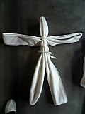 人形の作り方 その他 2008年12月08日 0 初めまして、麻生ふるえ役を演じました、藤長由佳と申します。 無事千秋楽を迎えることができましたのも、 送り手として共に劇に携わってくださったかたがた、 ご協力頂いたかたがた、 受け取り手として、劇場まで足を運んでくださったかたがた、 皆様のちからあってのことだと思います。 ほんとうに、ほんとうに、ありがとうございました。 すこしでも、皆様の心に、なにかを残せていたのなら幸いです。 さて、ねたばれになってしまうので終演まで書くことができなかったのですが、 今回の劇では リボン と 人形 が小道具として使われておりました。 引っ張られたり巻かれたり、落っことされたり抱かれたり、最後には解かれたりと、 物言わぬ共演者として活躍したこのリボンと人形のうち、 後説に換えまして、 人形の作り方などご披露してみようかと思います。 1.1m×5mの白い布を用意する 2.タテ半分に折る 3.もう半分におる 4.もう半分に折る → 消防のホースみたいになりました。 これを 5.まんなかからふたつに折る 6.もういちど折る 英語のwの状態。 7.まんなかを持ってひっくり返す ← するとこーいう状態になります。 8.頭と手足をつくる 9.細いリボンで縛って固定 できあがり。 この人形、稽古のあいまによく背負い投げされたり、枕にされたりしてました… リボン購入店 ハートリボンさん(http://www.makino-ribbon.co.jp/) 人形用布購入店 TOA渋谷店さん(http://www.toa-ltd.com/pc/) ありがとうございました。